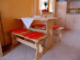 Unsere kleine (32 m²), aber feine Ferienwohnung für 2 Personen wurde erst im April 2008 fertig gestellt. Sie besitzt einen separaten Eingang in einem Einfamilienhaus. Sie besteht aus einem Flur mit Garderobe, einem Wohnbereich mit ausziehbarer Couch, Balkon, SAT-TV und Radio. In einer voll ausgestatteten Kleinküche können Sie durchaus auch viele Gerichte selbst zubereiten. Zum Essen steht ein Esstisch mit 4 Sitzgelegenheiten zur Verfügung. Im Schlafzimmer ruhen Sie bequem in einem Doppelbett. Radiowecker und ein geräumiger Schrank sind vorhanden. Im Tageslicht - Bad finden Sie einen Waschtisch, Dusche und WC.